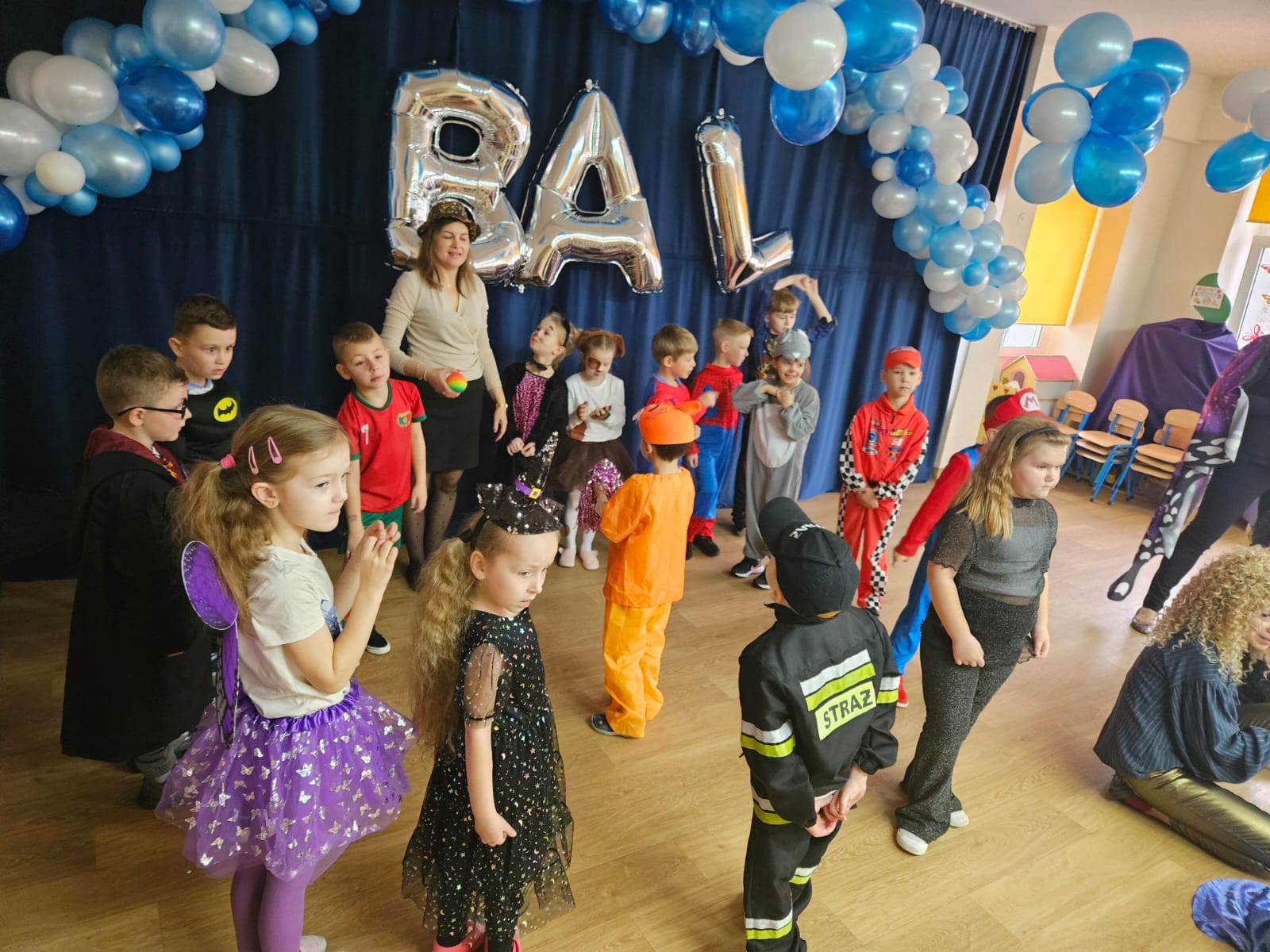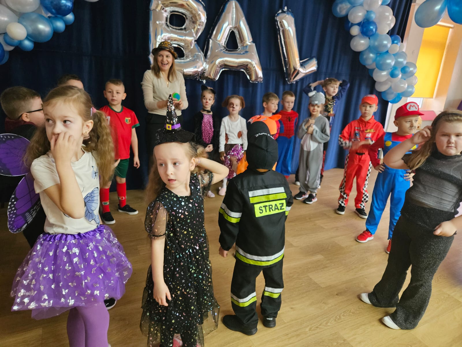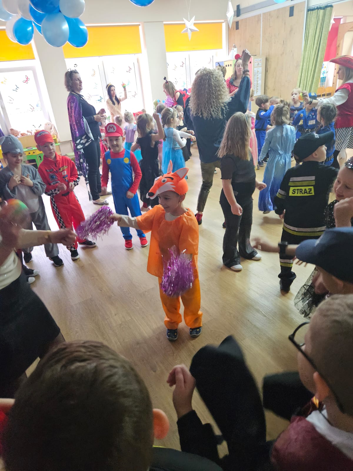 Jak karnawał to bal i dobra zabawa. W naszym przedszkolu od rana sale zamieniły się w prawdziwe krainy magii pełne księżniczek, policjantów, strażaków oraz innych postaci bajkowych. Do zabawy zostały zaproszone wszystkie przedszkolaki. Dzieci z wielką radością i ochotą uczestniczyły w tańcach, zabawach i konkursach. Bal był okazją do integracji oraz beztroskiej zabawy. Były konkursy, taneczne animacje a także słodki poczęstunek.
