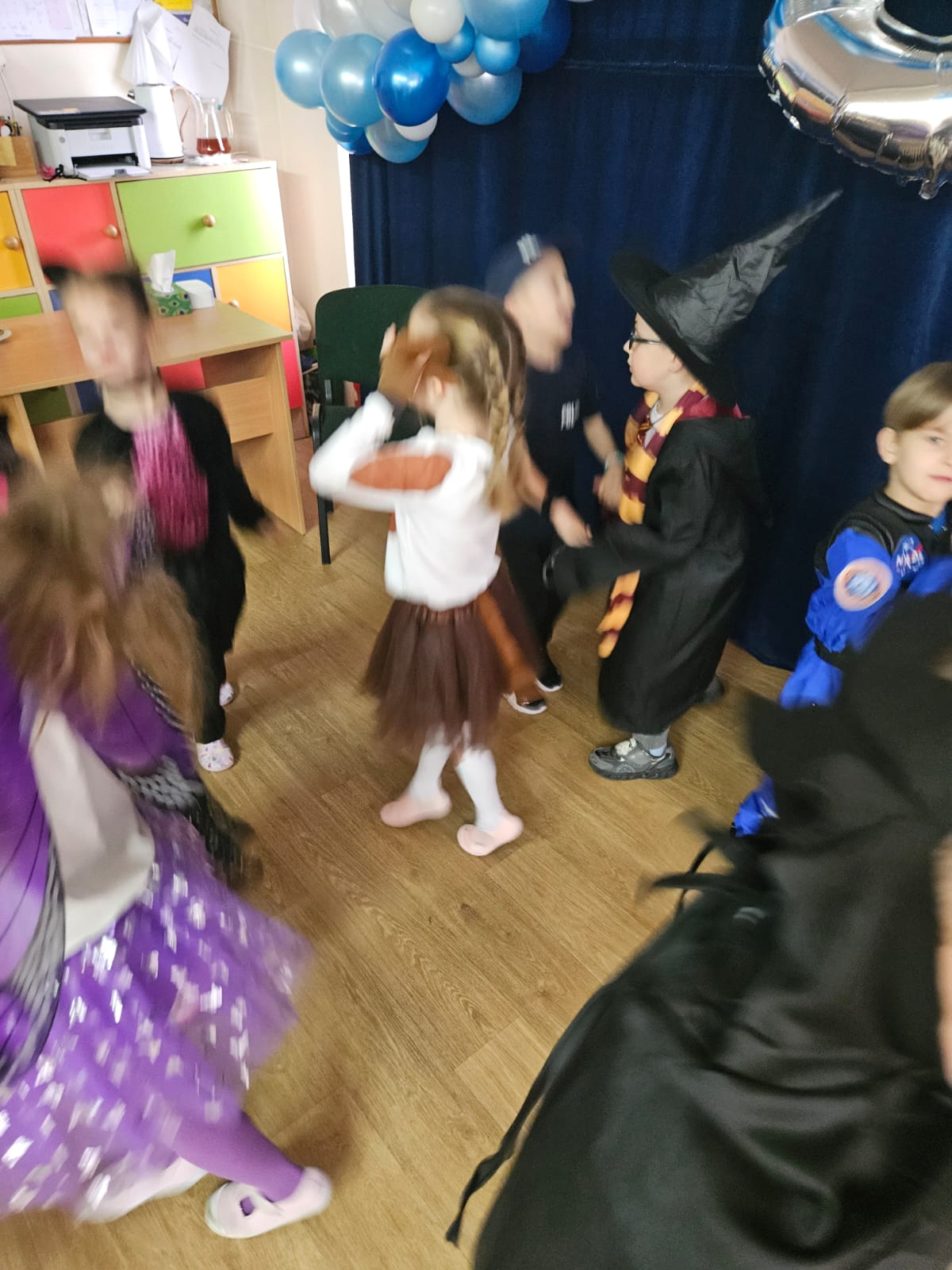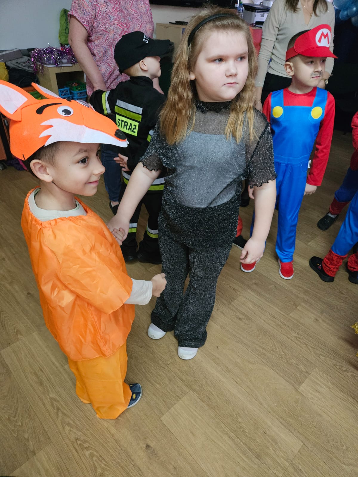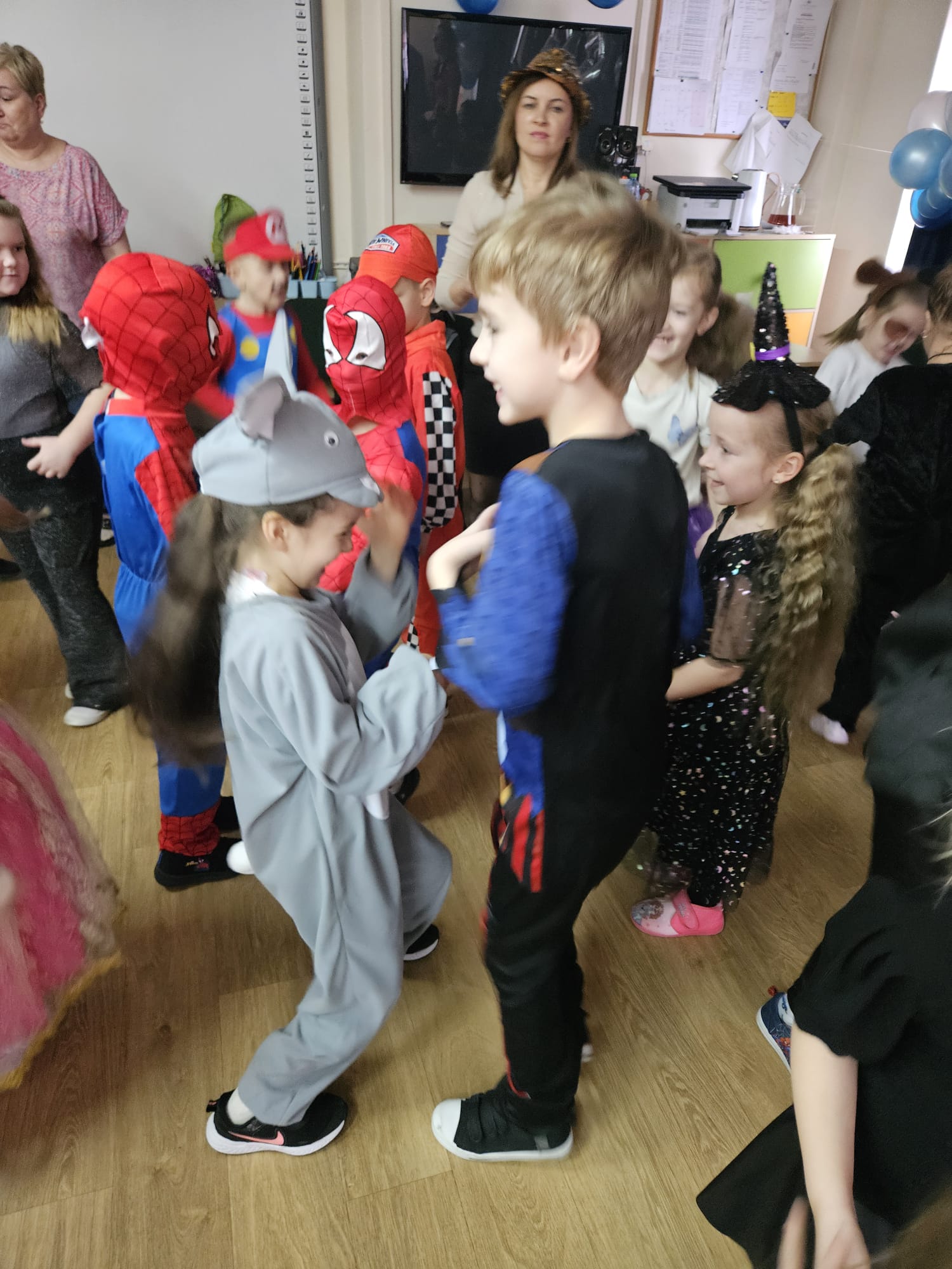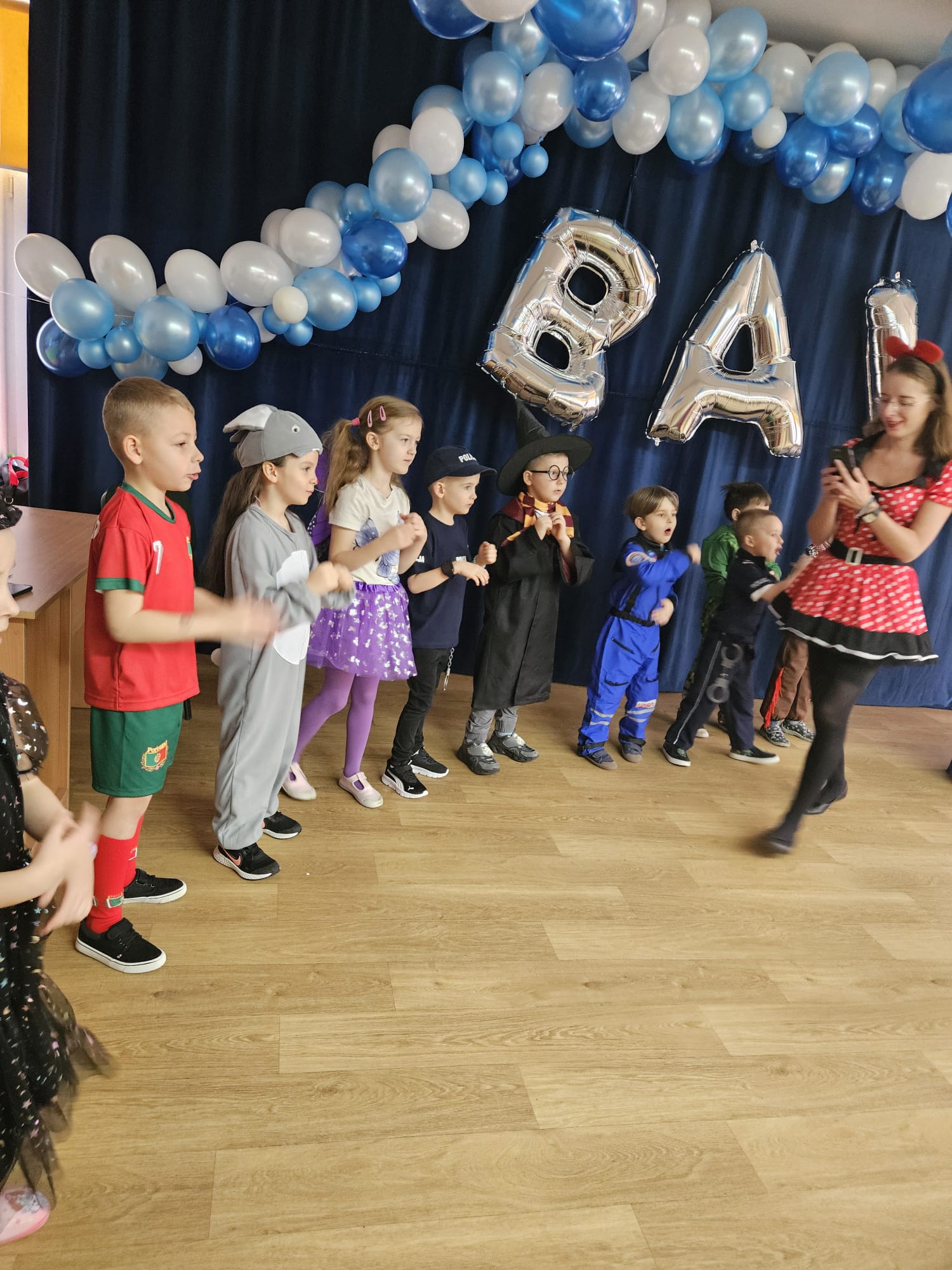 Jak karnawał to bal i dobra zabawa. W naszym przedszkolu od rana sale zamieniły się w prawdziwe krainy magii pełne księżniczek, policjantów, strażaków oraz innych postaci bajkowych. Do zabawy zostały zaproszone wszystkie przedszkolaki. Dzieci z wielką radością i ochotą uczestniczyły w tańcach, zabawach i konkursach. Bal był okazją do integracji oraz beztroskiej zabawy. Były konkursy, taneczne animacje a także słodki poczęstunek.