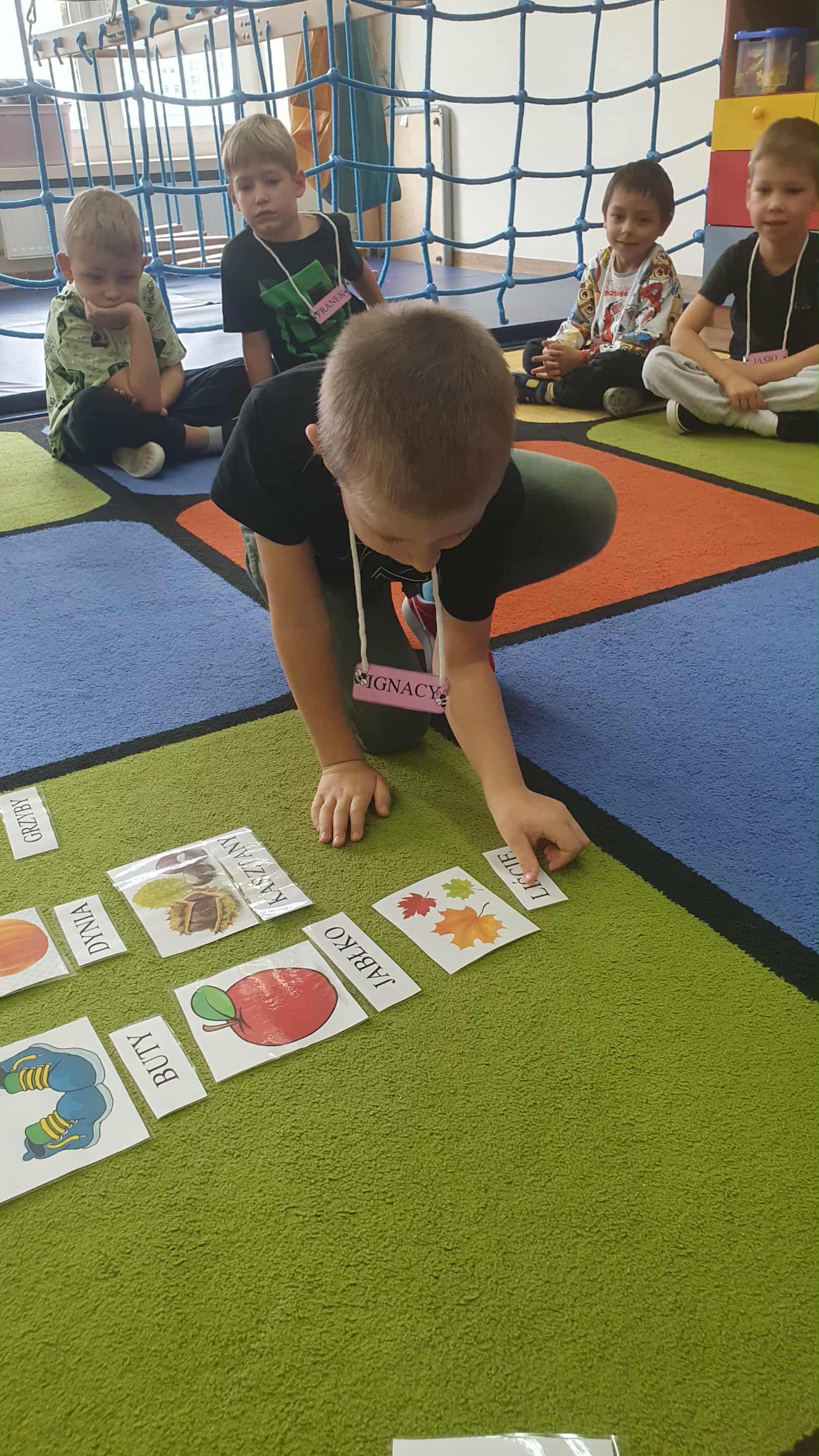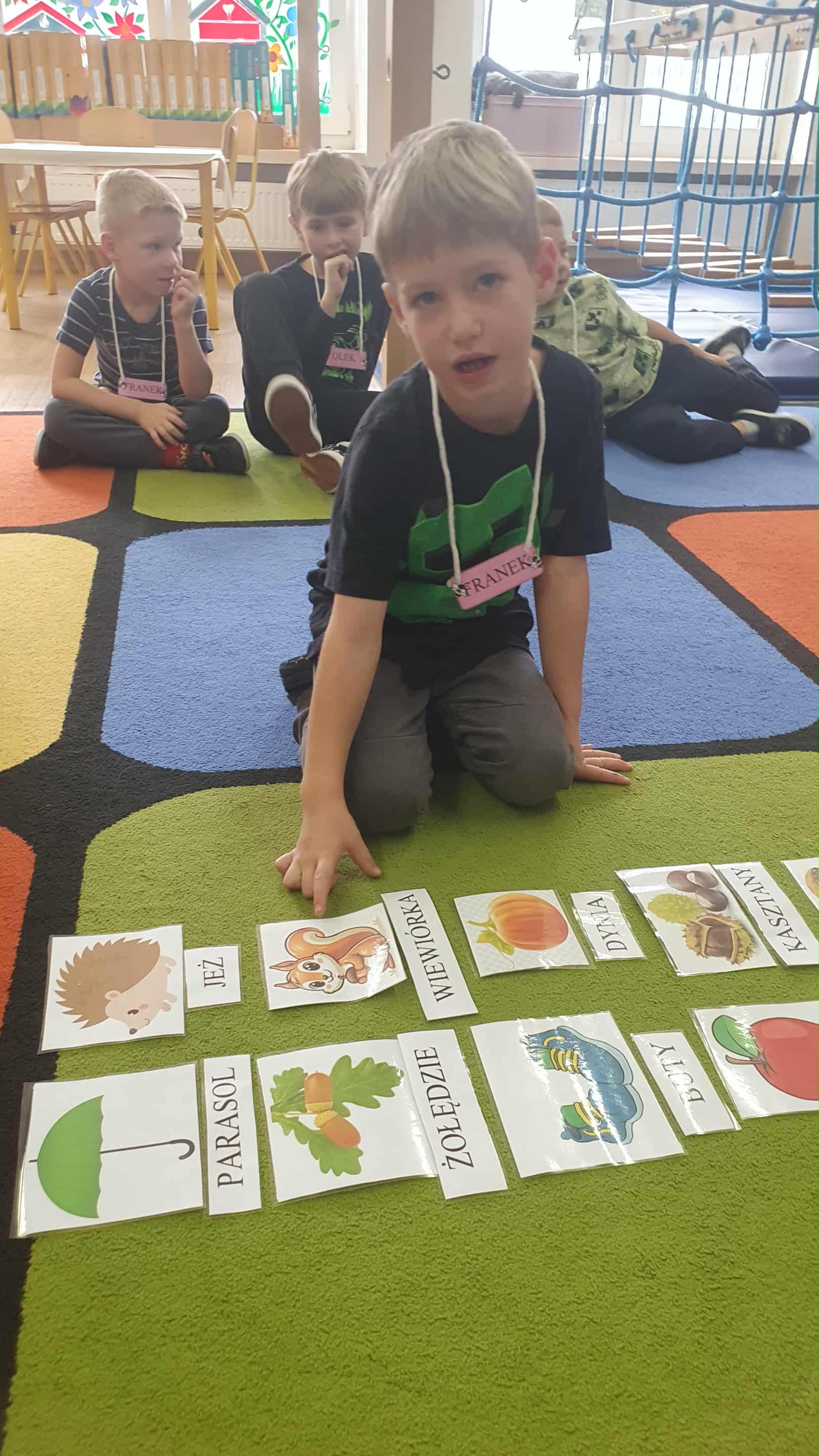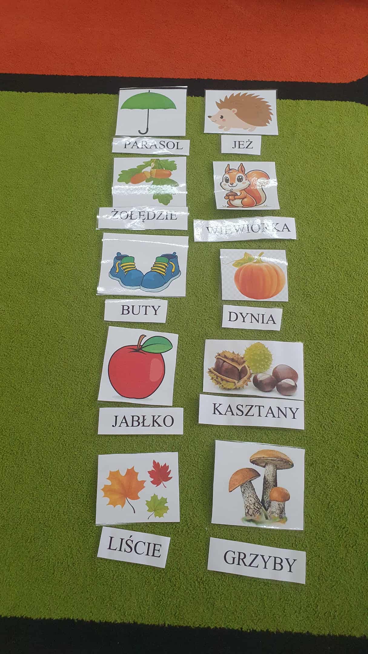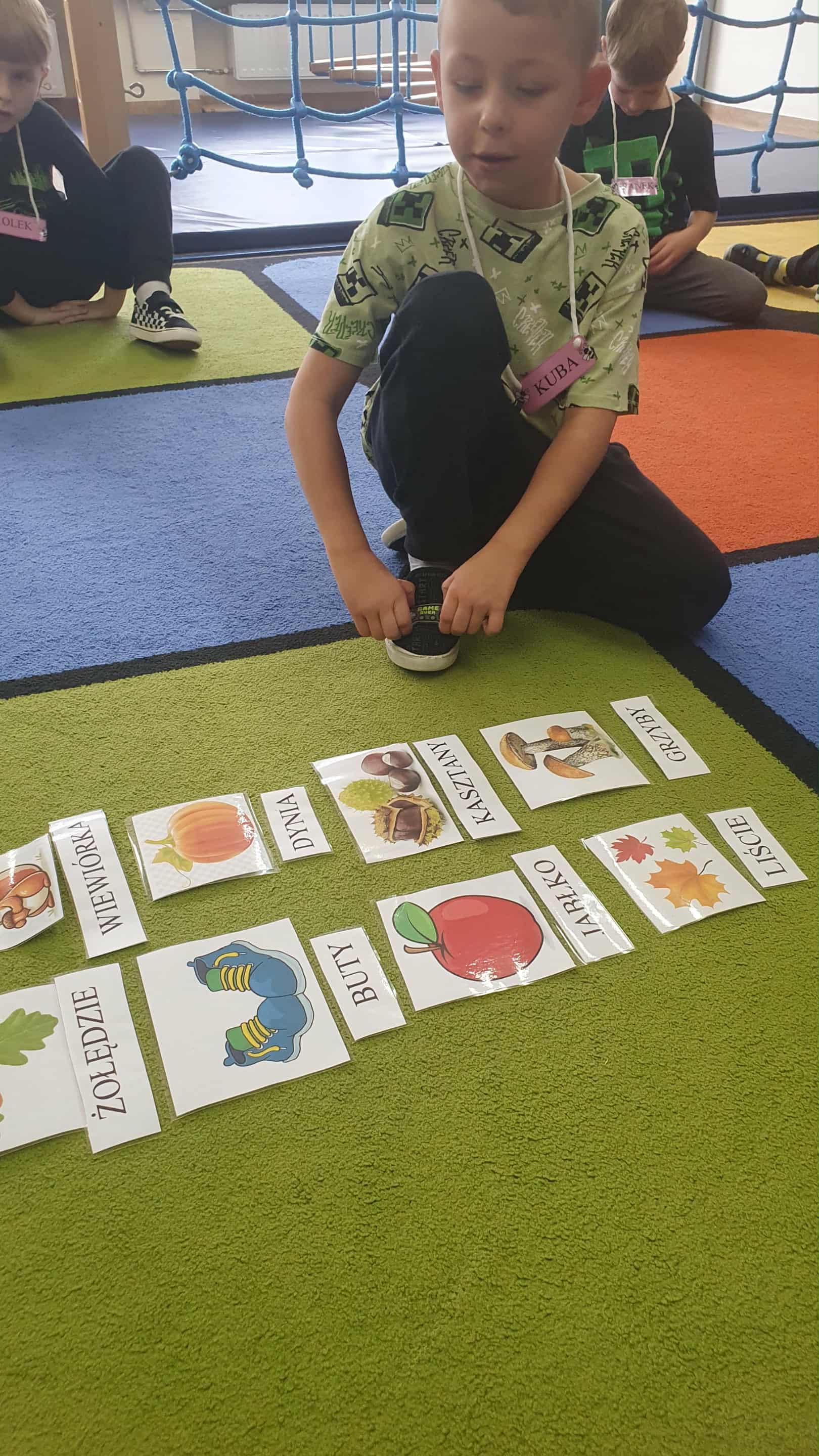 Bingo wyrazowe - zabawa z kartami migawkowymi.