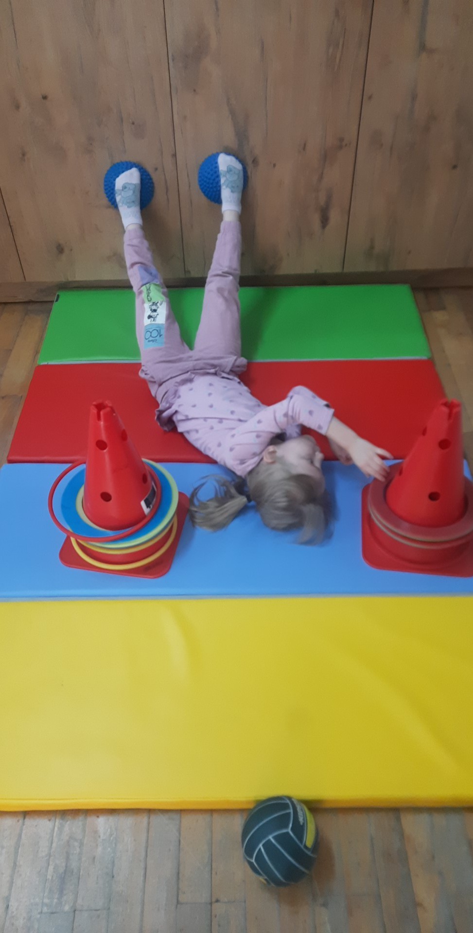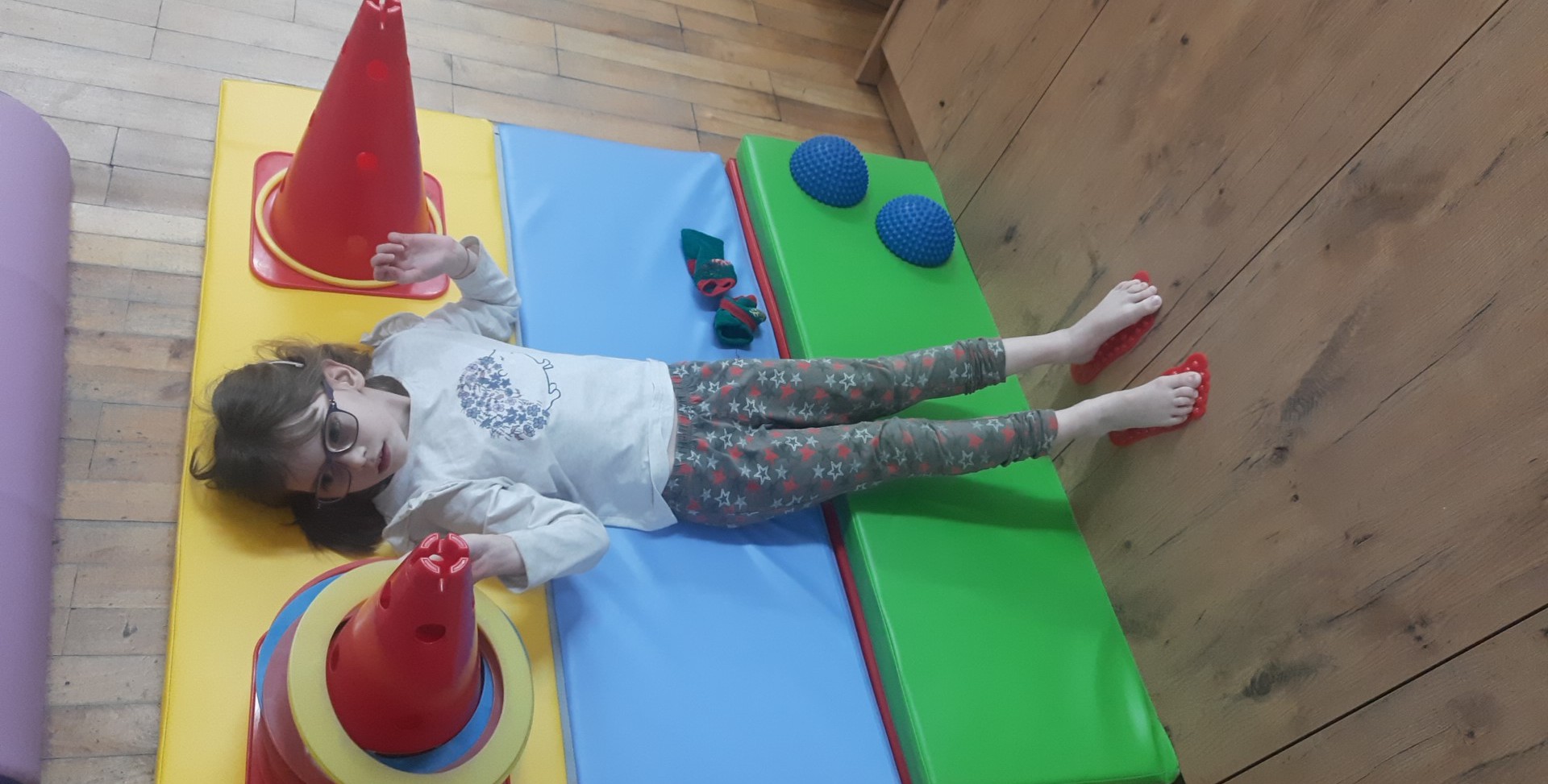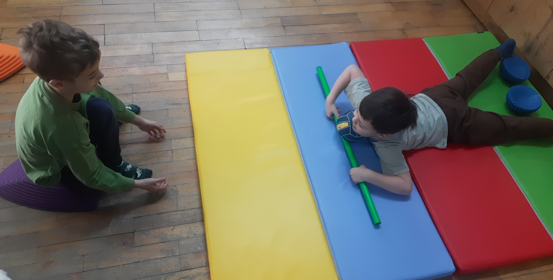Ćwiczenia równoważne , połączone z planowaniem ruchu i znajomością koloru.