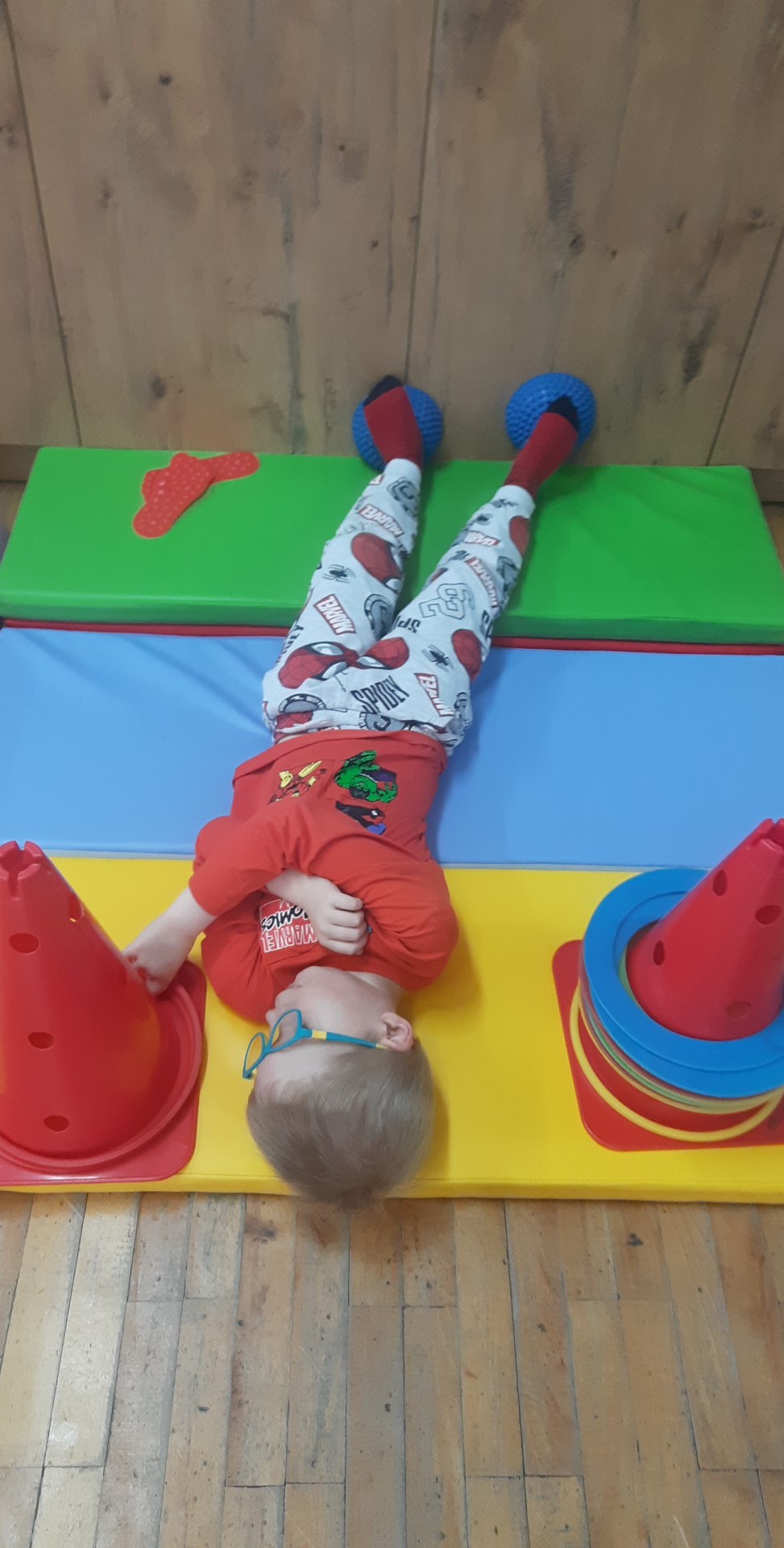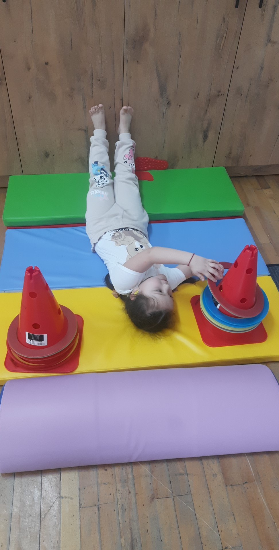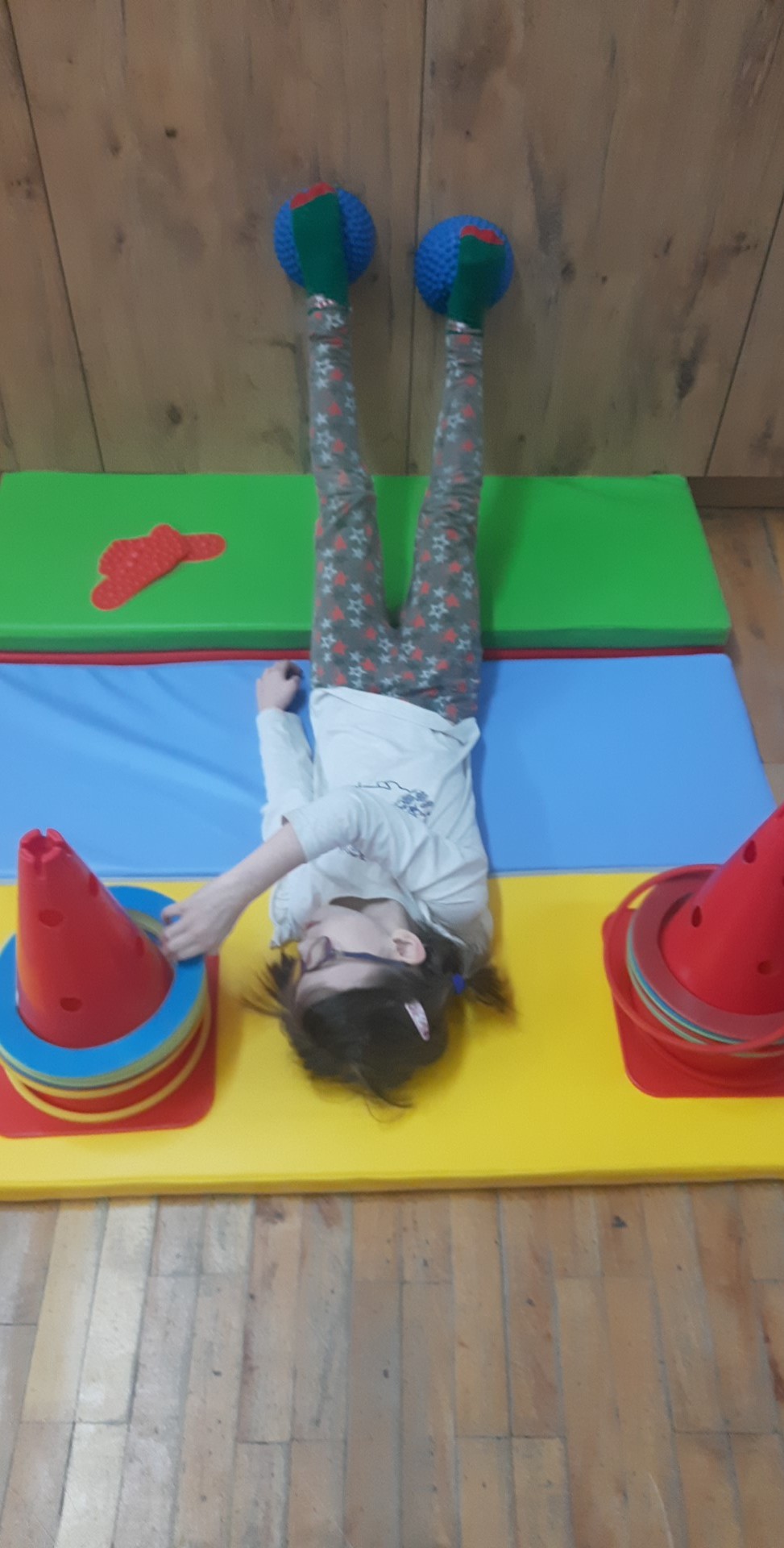 Ćwiczenia równoważne , połączone z planowaniem ruchu i znajomością koloru.