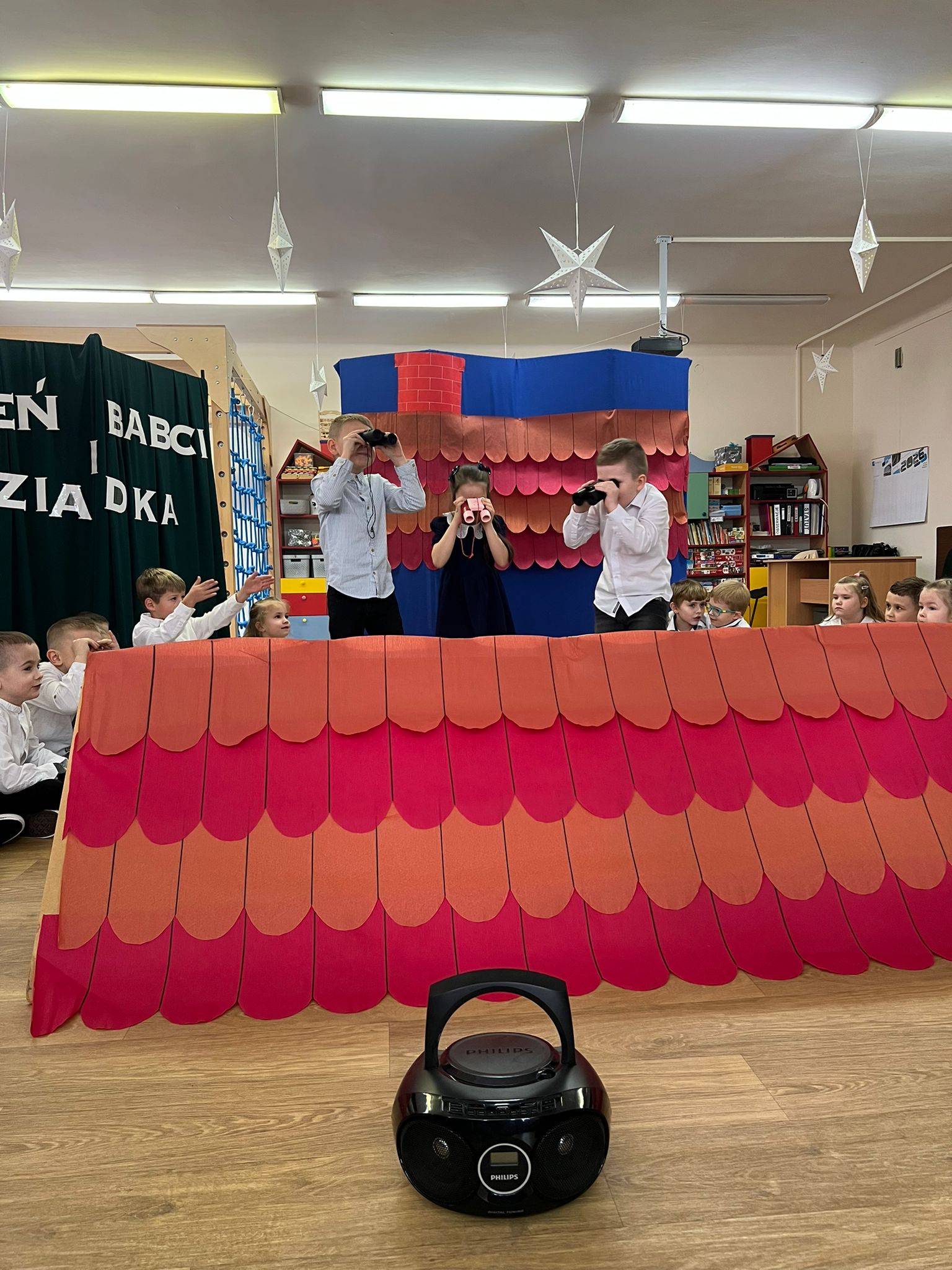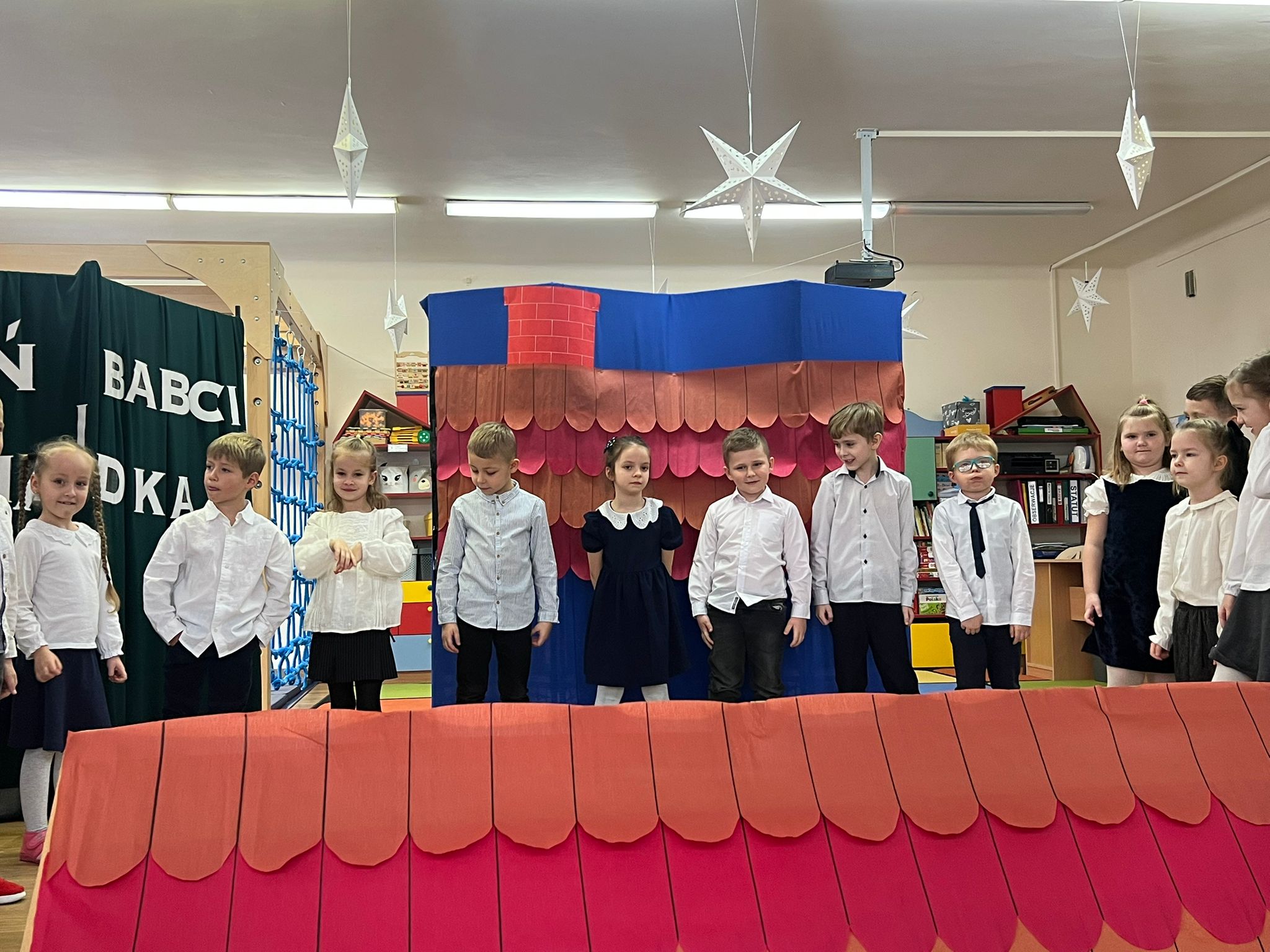 Tegoroczny Dzień Babci i Dziadka w gruie Pszczółki był pełen wzruszeń a także wyśmienitego humoru! Zamiast tradycyjnych wierszy i piosenek przedszkolaki przedstawiły tym razem humorystyczny skecz, który oczarował publiczność. Przedstawienie przeplatane było dynamicznymi tańcami, wzruszającymi piosenkami oraz humorystycznymi dialogami. Dzieci z wielkim zaangażowaniem odgrywały swoje role przed swoimi kochanymi dziadkami. Występy wnucząt dziadkowie nagrodzili gromkimi brawami, nie kryjąc wzruszenia. Po przepięknych występach wnuczęta wręczyły swoim dziadkom własnoręcznie przygotowane laurki oraz wspólnie udali się na słodki poczęstunek, przygotowany przez rodziców. Dziękujemy dziadkom za liczne przybycie!
