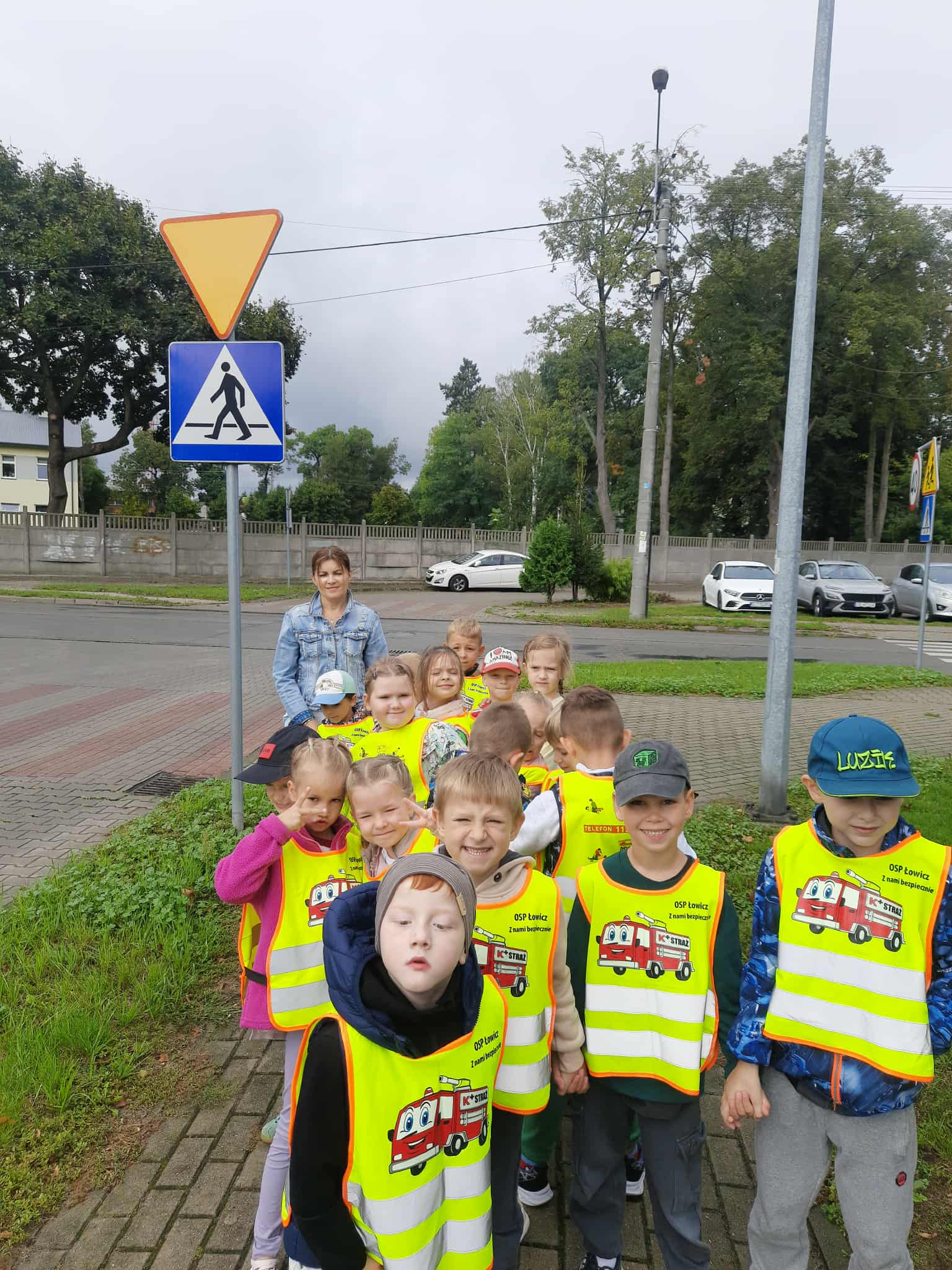 Dnia 18 września przedszkolacy zapoznawałli się ze znakami drogowymi, sygnalizatorem świetlnym i przejściem dla pieszych.