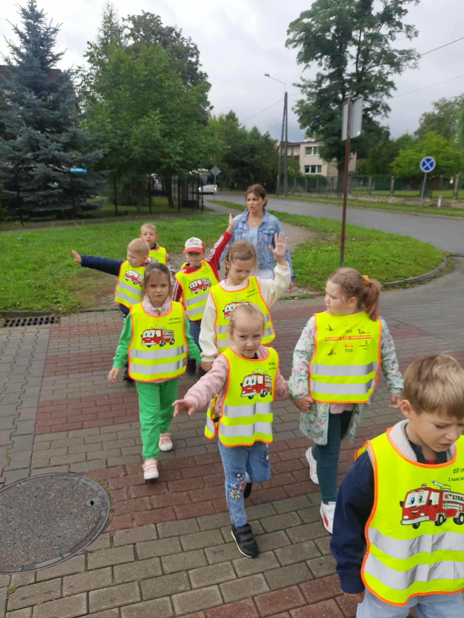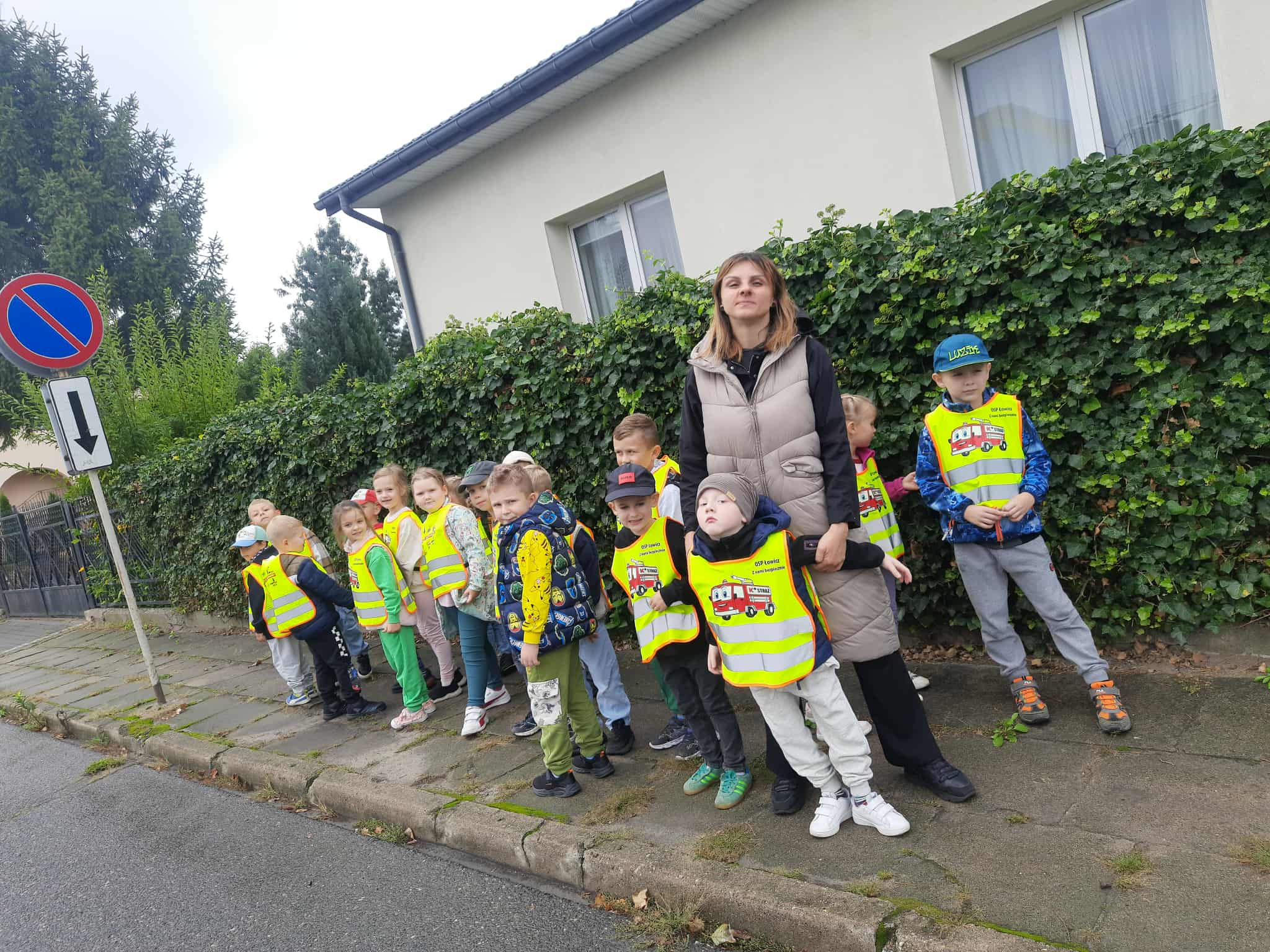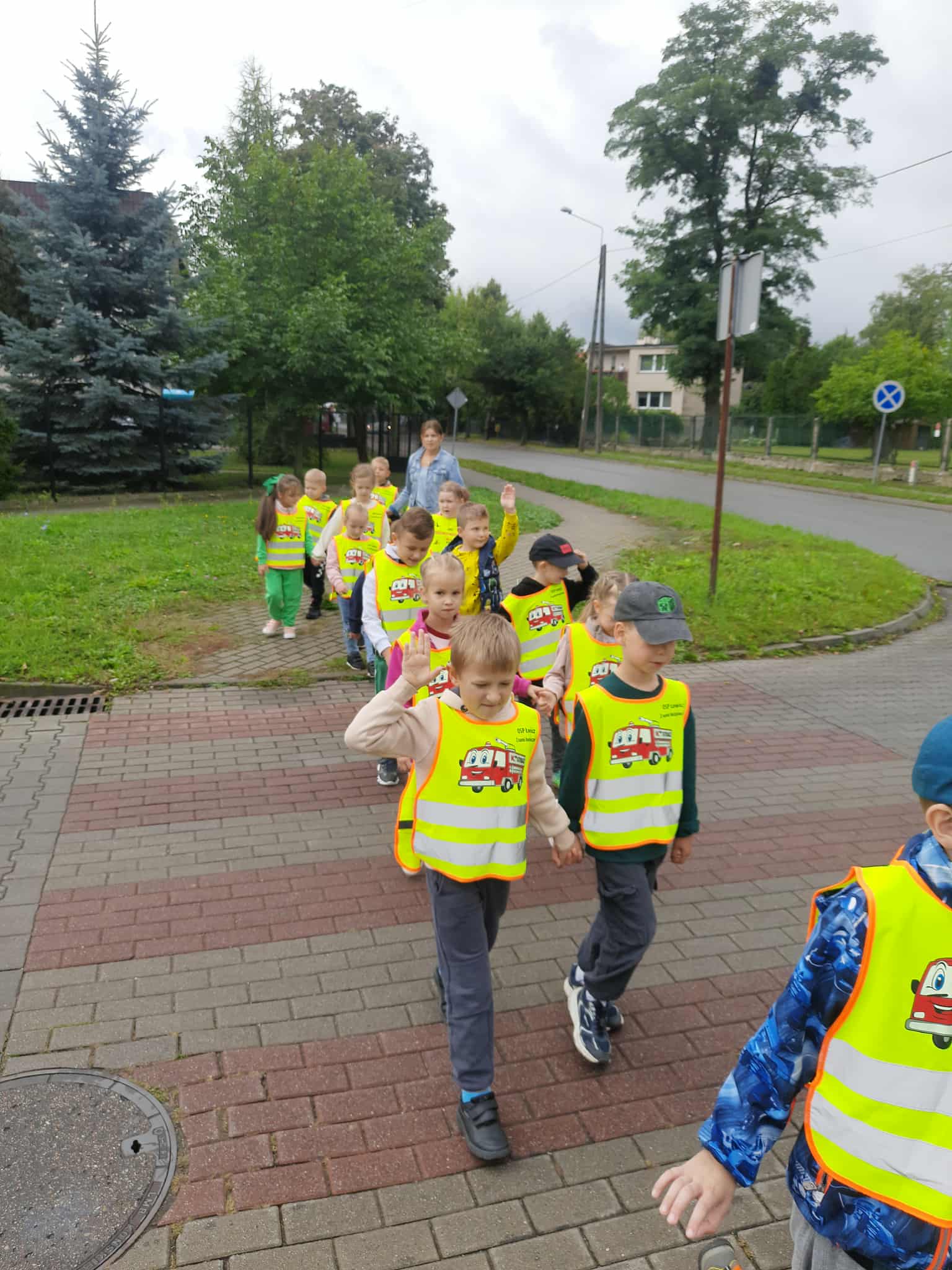 Następnie wybraliśmy się na spacer w poszukiwaniu znaków drogowych. Dzieci zapamiętywały kształty i kolory znaków. Przedszkolacy wiedzą, że najważniejsze jest bezpieczeństwo.