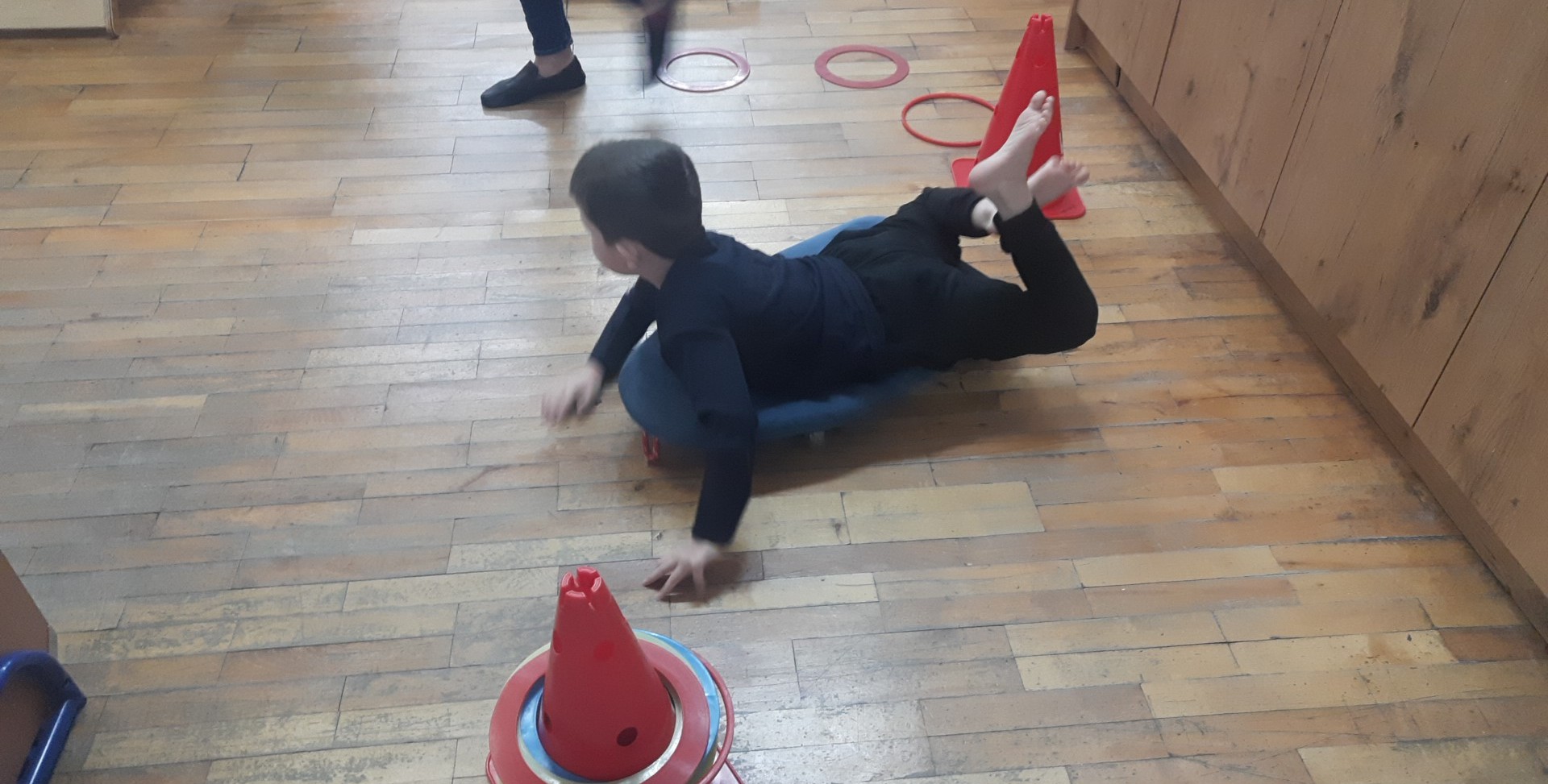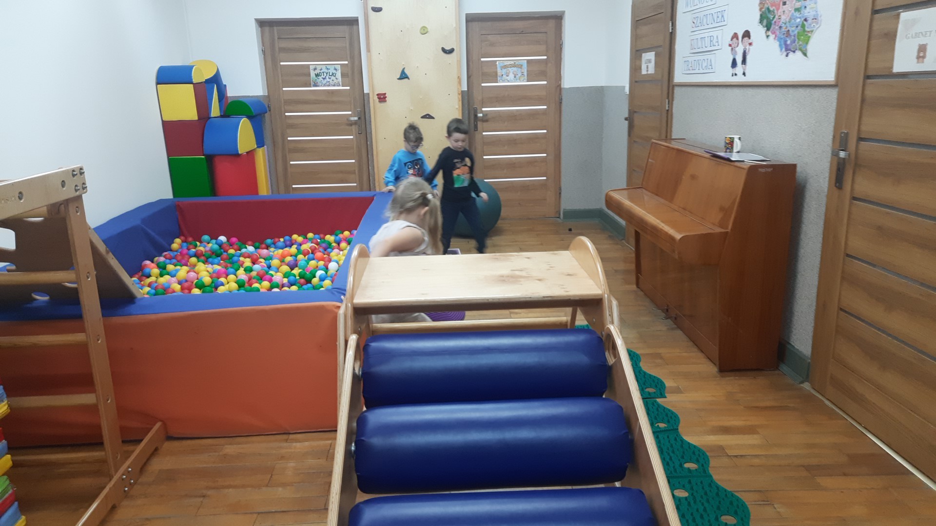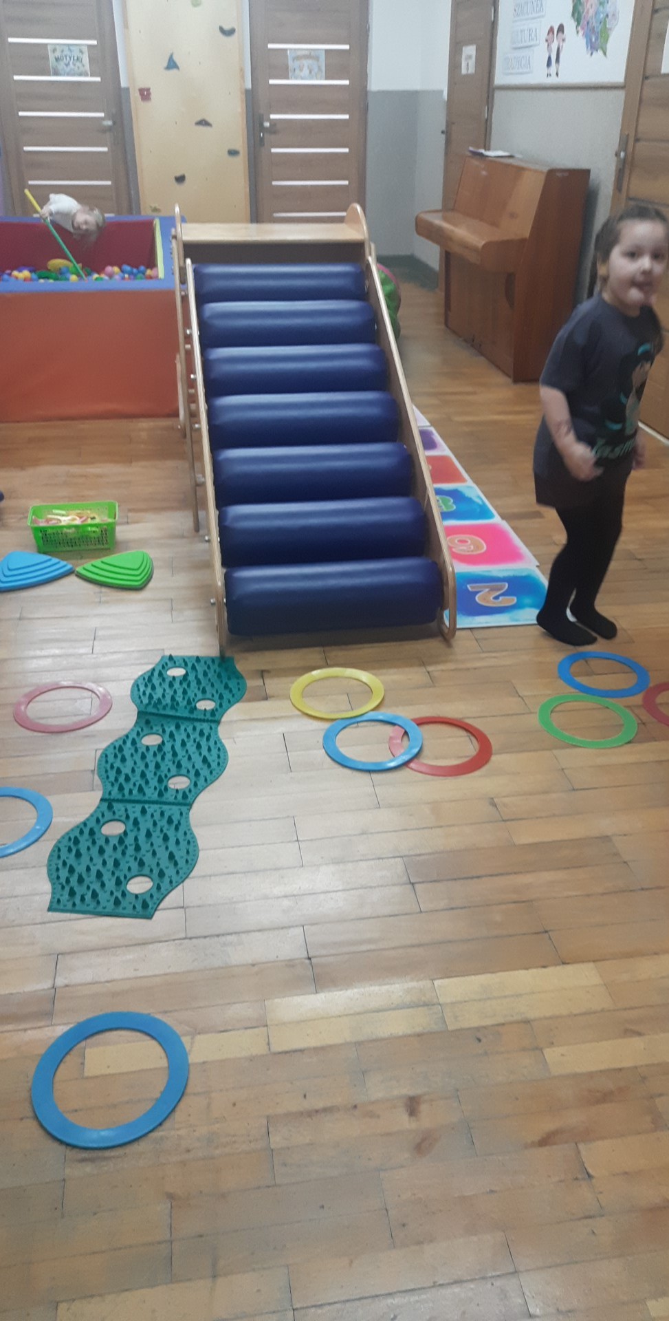 Stymulowanie propriocepcji z wykorzystaniem zjeżdżalni rolkowej, torów przeszkód, tunelu gimnastycznego, maty sensorycznej